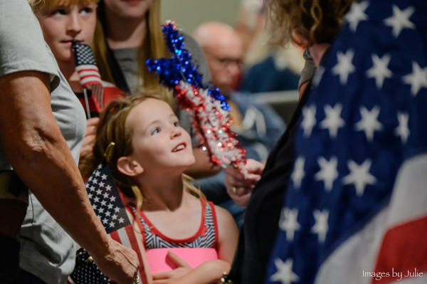 Tuesday night around 7:30 p.m., the quiet rhythm of Tulsa International Airport transformed into a patriotic symphony. Crowds of all ages — young, old, and elderly — gathered draped in red, white, and blue. Some waved small American flags. Others clutched handmade signs or proudly carried full-size flags on six-foot poles.