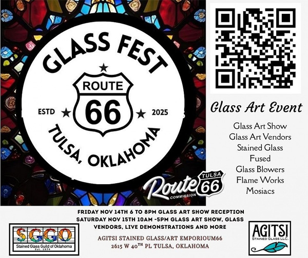 Agitsi Stained Glass, llc, this week announced the launch of its latest innovation, Route66 Glass Fest, designed to showcase the world of glass with Glass Artist Vendors, Stained Glass Guild of Oklahoma, Glass Art Show and LIVE demonstrations Nov 14 & 15th. This offering aims to bring glass art enthusiasts and artists to visit the Historic Route66 Redfork District, educate on the many forms of glass arts, and support local and visiting glass artists by connecting them and holiday shoppers.