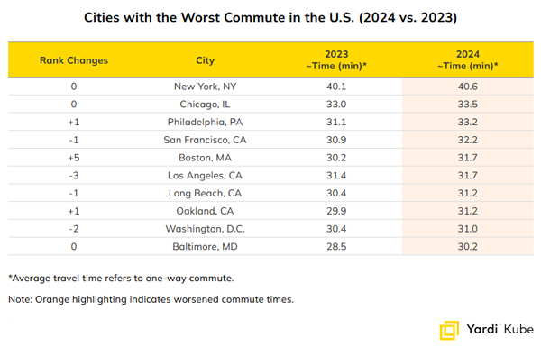 The study shows the national one-way average reached 27.2 minutes in 2024, up from 25.6 in 2021 and nearly back to 2019’s 27.6 minutes. Tulsa with the fastest commute in the nation, averages one-way travel time rising slightly from 19.1 to 19.7 minutes Year-Over-Year.