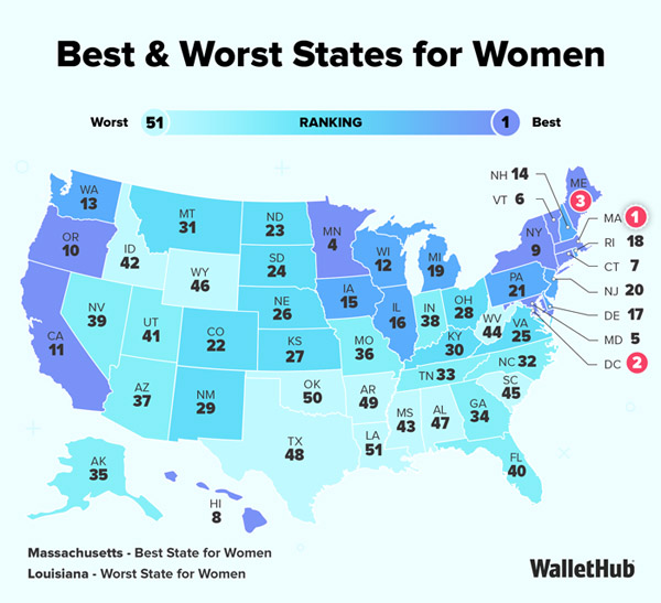 For the full report, click here: https://wallethub.com/edu/best-and-worst-states-for-women/10728