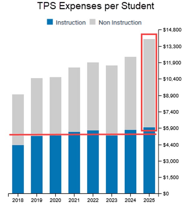 Sources: Not covered above: +25%: TPS cost per student is 25% more than private school.