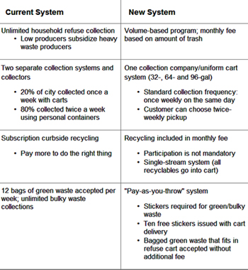 This TARE policy included three main changes. The first change was that residents receiving waste-removal services will be required to purchase and use special bins. The second change was that these bins must be moved to within a certain number of feet from the road for pick-up. The third change was that the waste pick-up would only occur once a week, instead of twice.