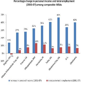 A comparison can be made between Tulsa MSA (metropolitan statistical area) and similar size MSAs with comparable populations.