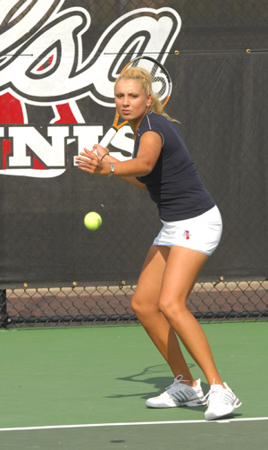 Last weekend the freshman defeated Sam Houston State’s Irinia Sotnikova, 6-2, 3-6, 1-0 (10-6) and Viviana Yrureta of Kansas State,  3-6, 6-3, 1-0 (10-4), both at No. 1 position. Kichoutkin is also 8-1 doubles competition with partner Jie Zeng, including two wins last weekend.